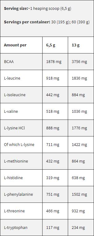 Разтворете 6.5 грама (1 лъжичка) в 250 мл. вода и приемайте преди и след тренировка.